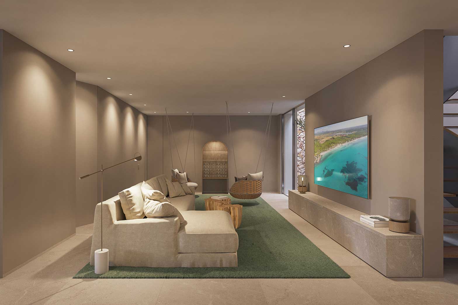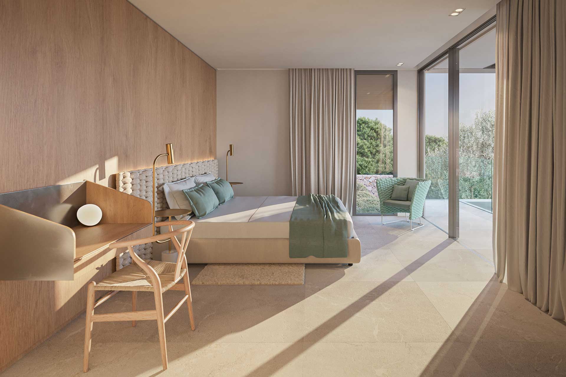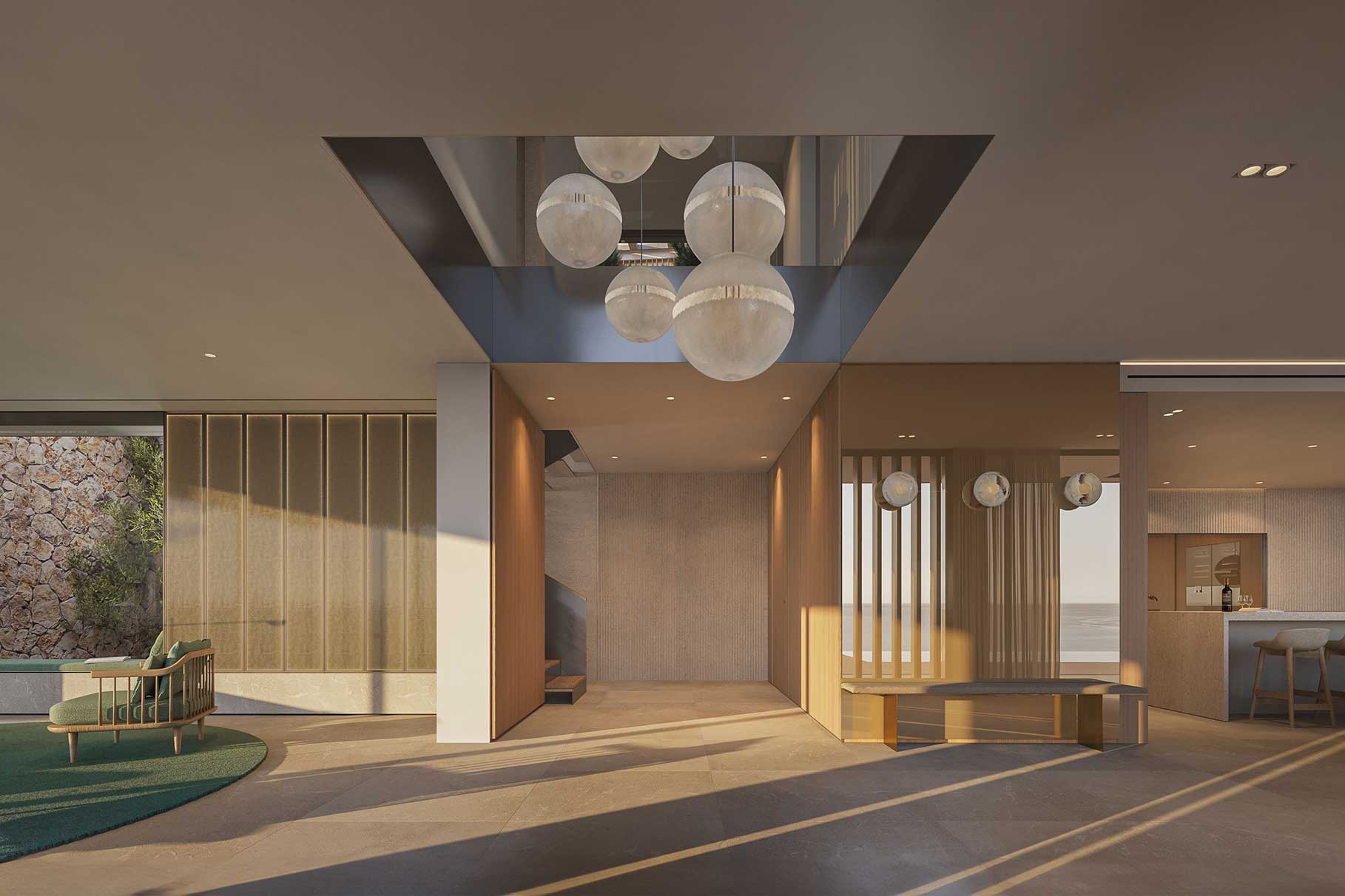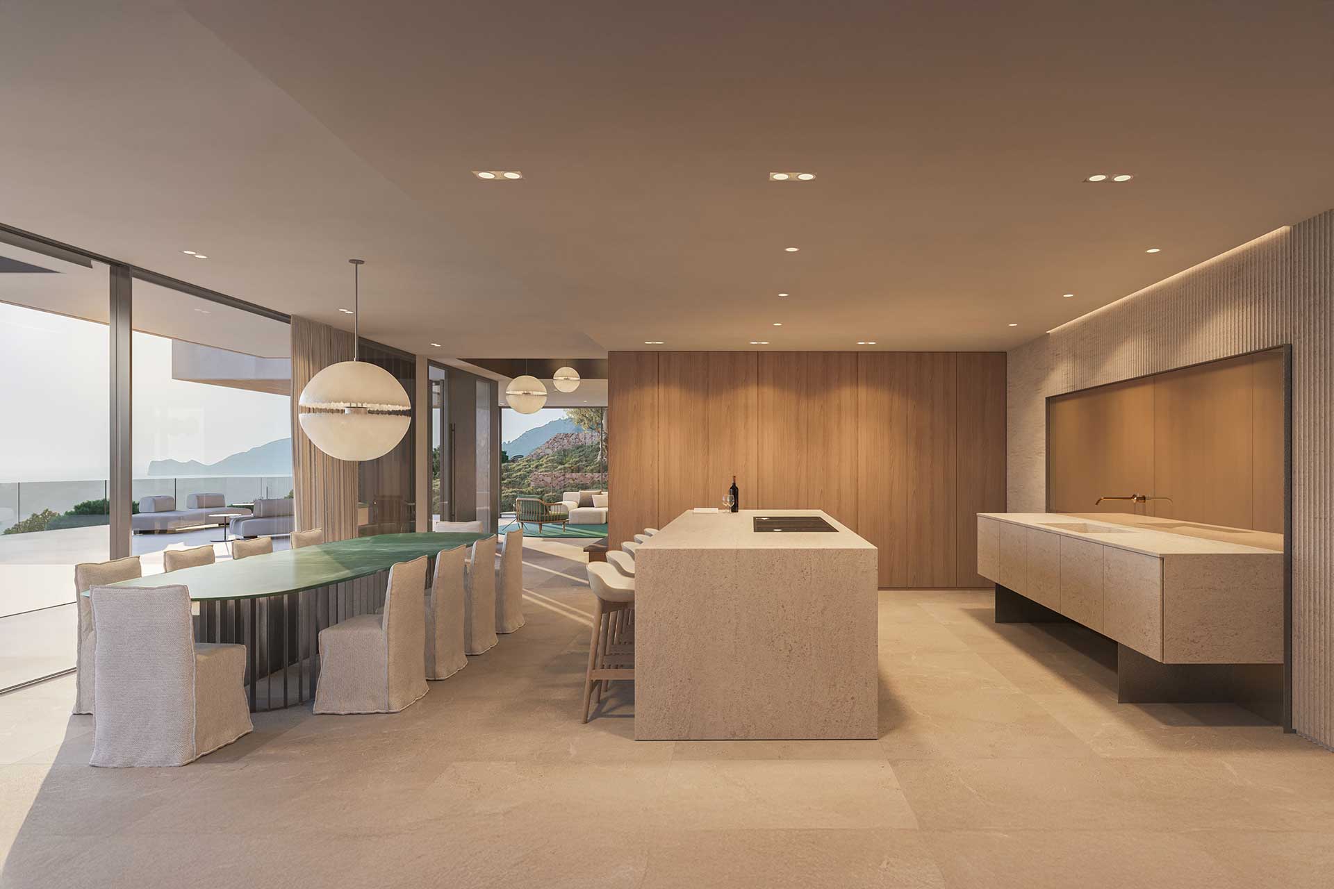All materials have been carefully selected and are processed with a high degree of craftmanship and precision. Regional references are interpreted in a modern way. The designers have focused on clear lines a high-quality material such as natural stone and fine woods. This villa, unique for Mallorca, guarantees you the highest living comfort trough the insulated facade with high-quality natural stone, smartphone technology, geothermal and solar energy, the property offers a zero-energy standard, unique to the Balearic Island.