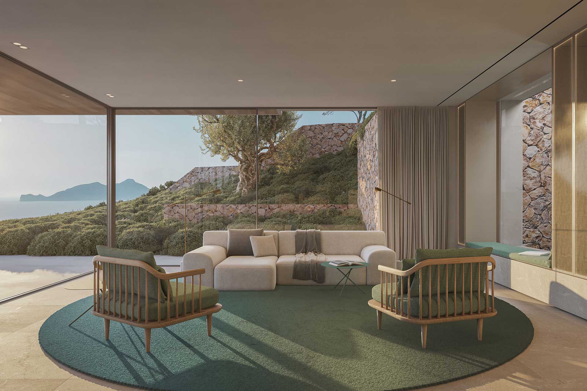 With this villa Edificam has set the course for the future energy standards in Mallorca. Zero net energy building. Geothermal energy is not only climate-friendly, but also available at any time.